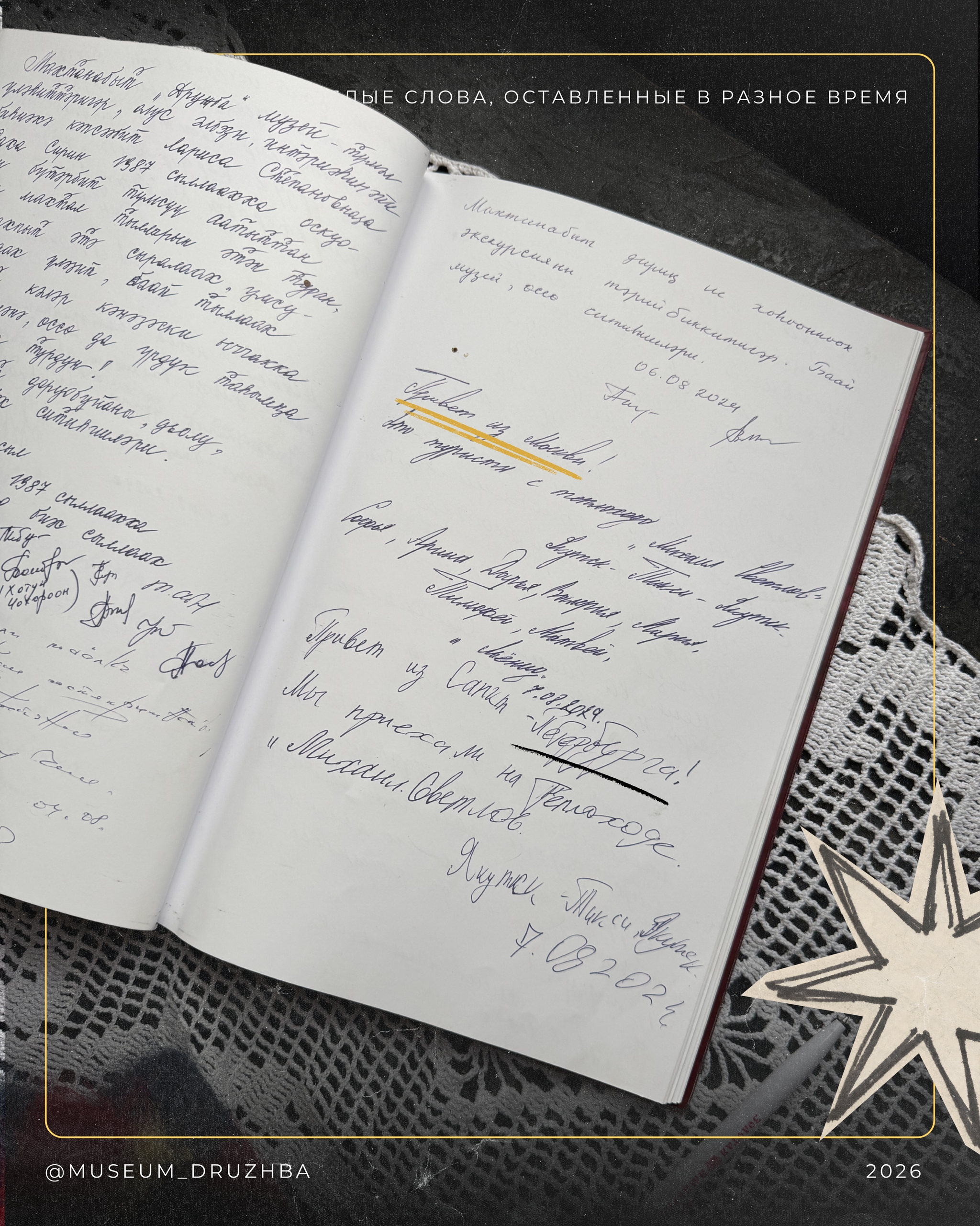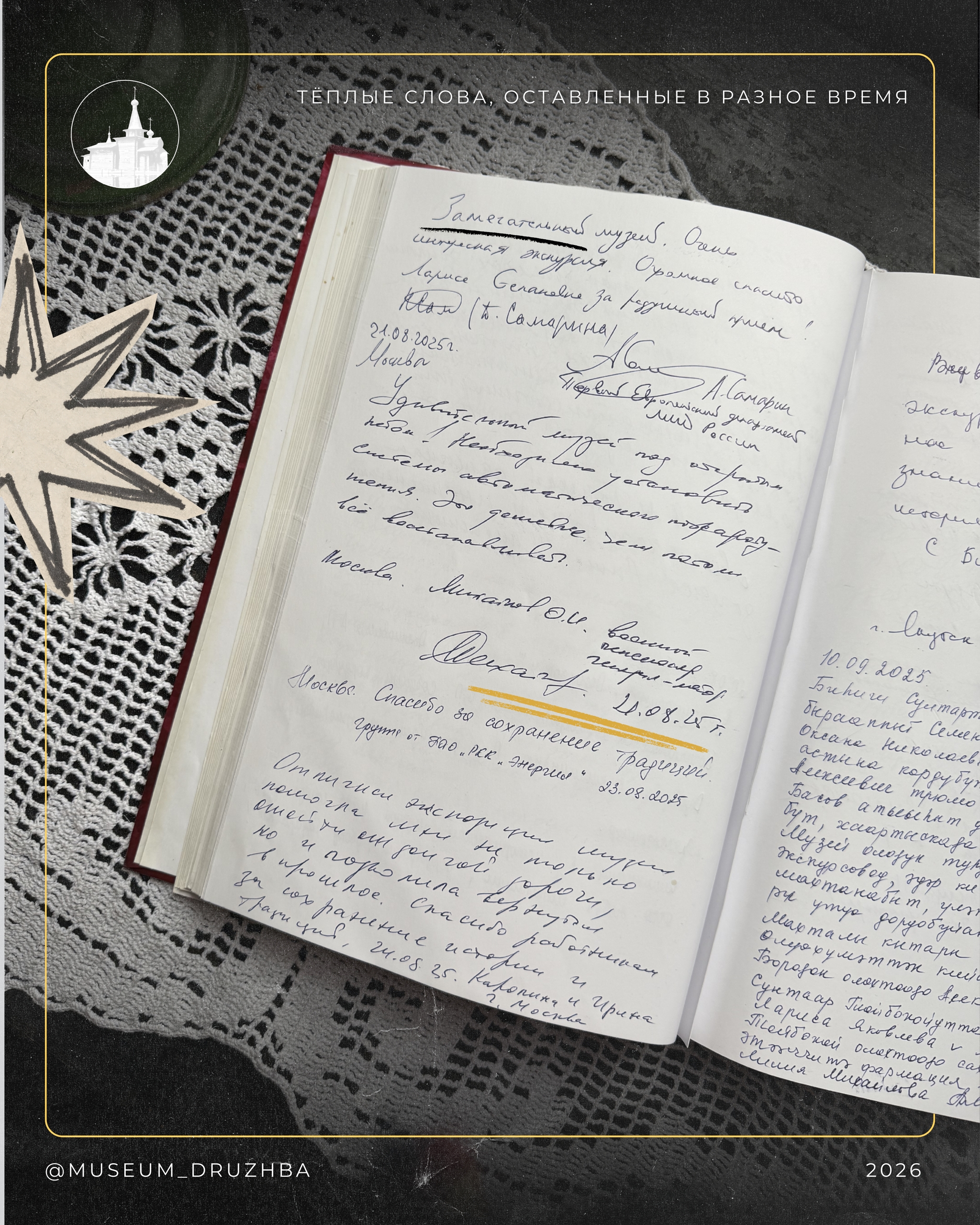 Предлагаем заглянуть в книгу пожеланий музея-заповедника «Дружба» —
